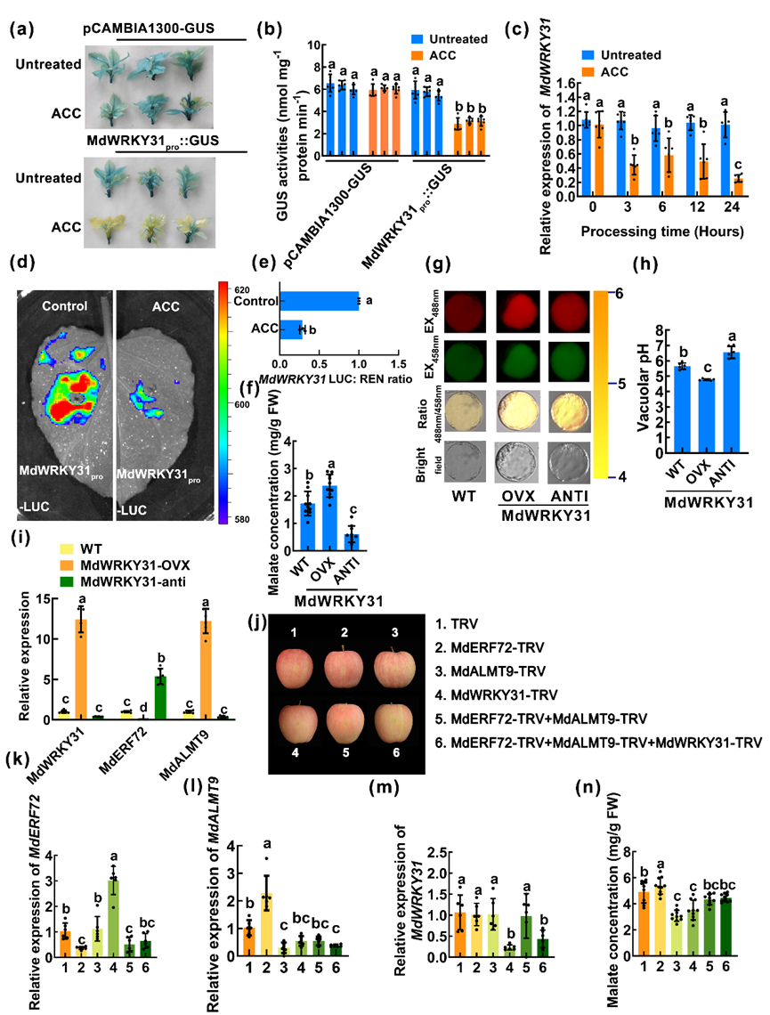 图1 乙烯诱导的WRKY转录因子MdWRKY31提高苹果果实中苹果酸含量