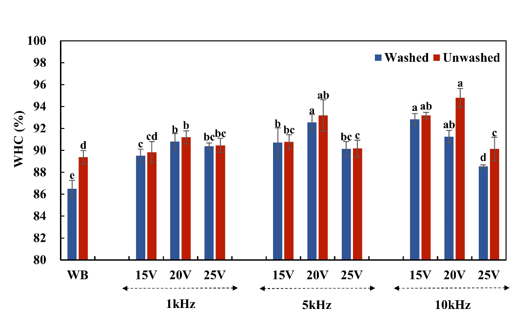 图2. 不同加热条件下漂洗与未漂洗鱼糜的持水性