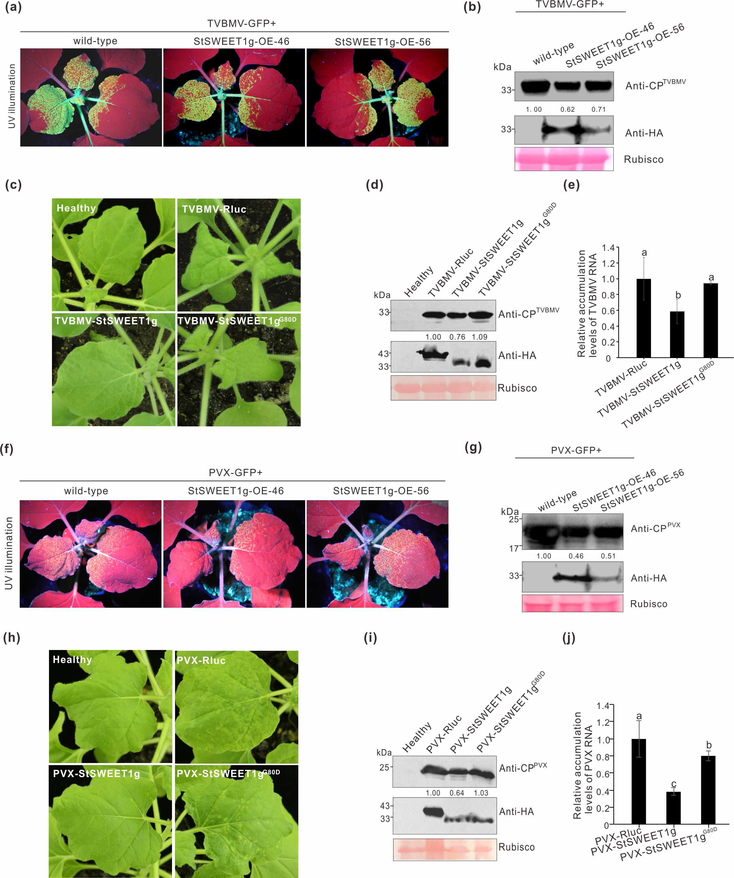 图 StSWEET1g抑制TVBMV和PVX侵染
