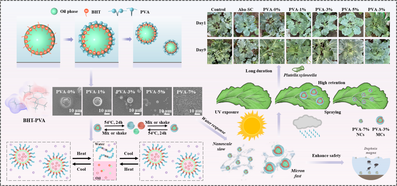 植物保护学院刘峰教授团队开发兼具缓释动力学和小尺寸协同效应的可逆BHT/PVA递药体系以增强农药稳定性和持效性